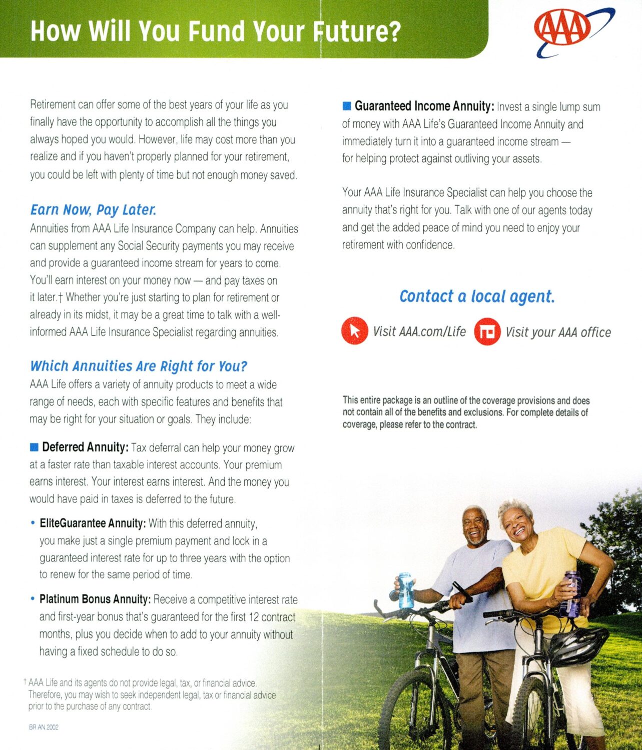 On the other hand, AAA Life continued to leverage a longstanding annuity mailer which spotlighted the average length of a retirement fund, urging customers to get in touch with an agent. Its mailers also elaborated on the different types of annuities to help customers consider which option was right for them.